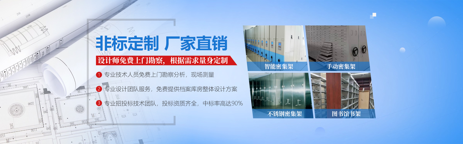 可根據客戶不同的需要設計、制作各種款式或特殊規格的密集架、書架、公寓床、安防設備等